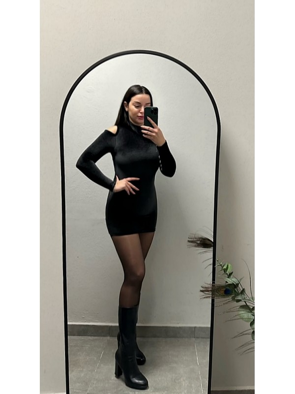 ΒΕΛΟΥΔΙΝΟ ΜΙΝΙ ΦΟΡΕΜΑ ΜΕ ΕΞΩ ΩΜΟΥΣ ΚΑΙ ΦΕΡΜΟΥΑΡ